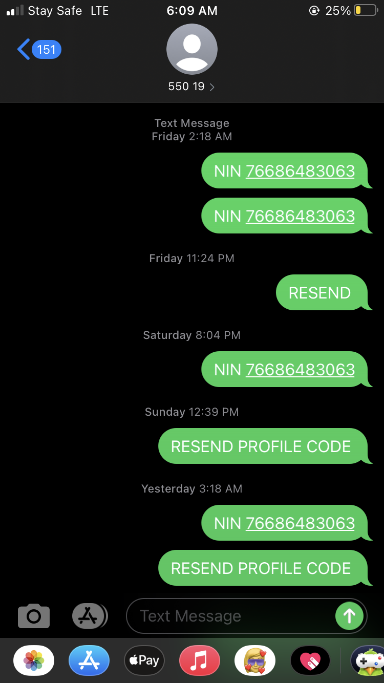 Profile code has been sent to your phone number. Forward your NIN and phone number if the problem persists